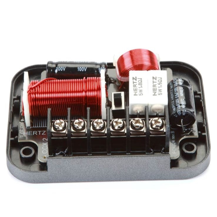 Crossovers: Each crossover has a tweeter output level switch; choose between 0dB (flat) and +3dB. The crossover point is 2.5 kHz and the slope is 12 dB/octave (low pass and high pass). The inputs and outputs are screw terminals that will accept bare wire or spade connectors up to 0.315" wide. The woofer has quick slide terminals, so crimp-on terminals can be added (item number 120FQS10PK, sold separately) to provide the needed terminals.